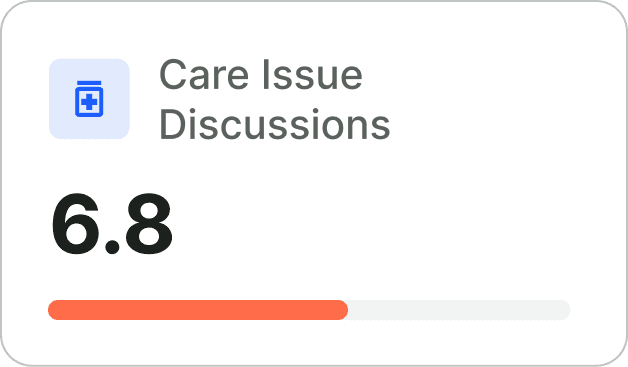 Early signals around condition changes, confusion, and satisfaction are captured as they emerge.